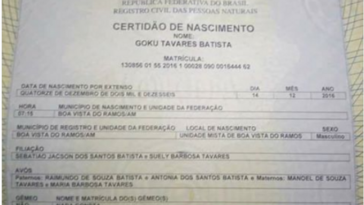 in WOWNo Amazonas, bebê é registrado com nome Goku e a certidão está aqui para você ver
